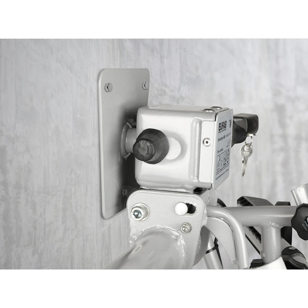 With this practical wall bracket, the hitch bike rack is no longer in your way. The wall bracket is made of powder-coated steel and has a maximum load capacity of 50 kg, allowing it to hold the hitch bike rack perfectly and securely.