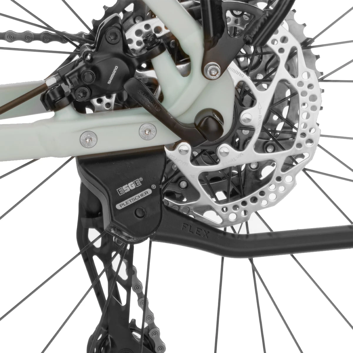 Flexible and stable: The Comp 40 Flex rear kickstand from Pletscher can be loaded with up to 50 kg and is suitable for bikes with wheel sizes from 24″ to 29″ thanks to its flexible height adjustment. The only requirement is that your bike has a KSA mount with 40 mm bolt spacing.