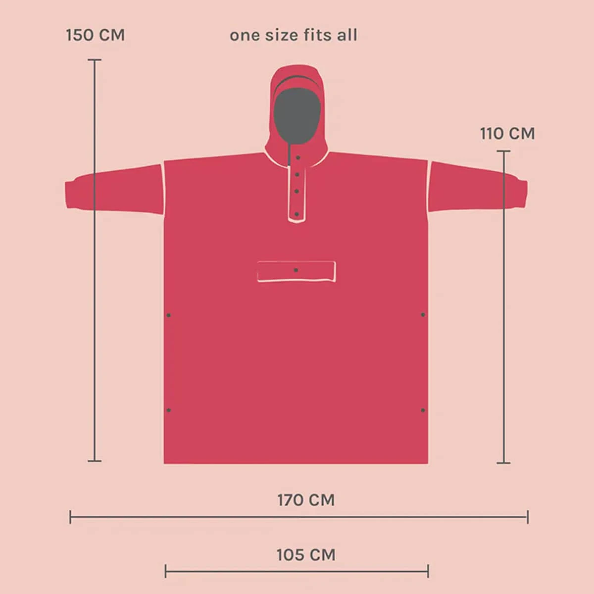 The colourful RAIN PONCHO from RAINKISS will keep you in a good mood even on wet rainy days thanks to its uplifting, stylish and beautiful designs. The recycled material offers you ideal weather protection thanks to a water column of 7,000 mm and sealed seams. The side adjustment by means of two press studs is ideal for when you’re riding your bike.