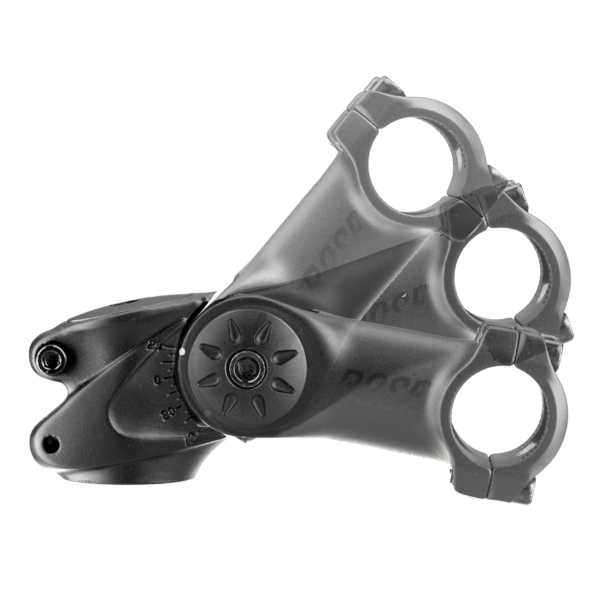 The angle-adjustable Adjust stem by ROSE in the simple Black Edition allows you to perfectly adjust the handlebar position on your bike from -20° to +40° and flexibly adapt it to your riding position. Thanks to a one-bolt system, you can quickly find the desired angle in 10° steps. Two rows of 36 teeth each ensure accurate positioning and even pressure distribution over the entire stem. This secures the ROSE A-Head stem in position, without any play or movement. At any angle, at any stem length. With its aerodynamic design, the adjustable stem in the Black Edition blends in well with the overall look of sports bikes, urban bikes, hybrid bikes and nippy e-bikes.