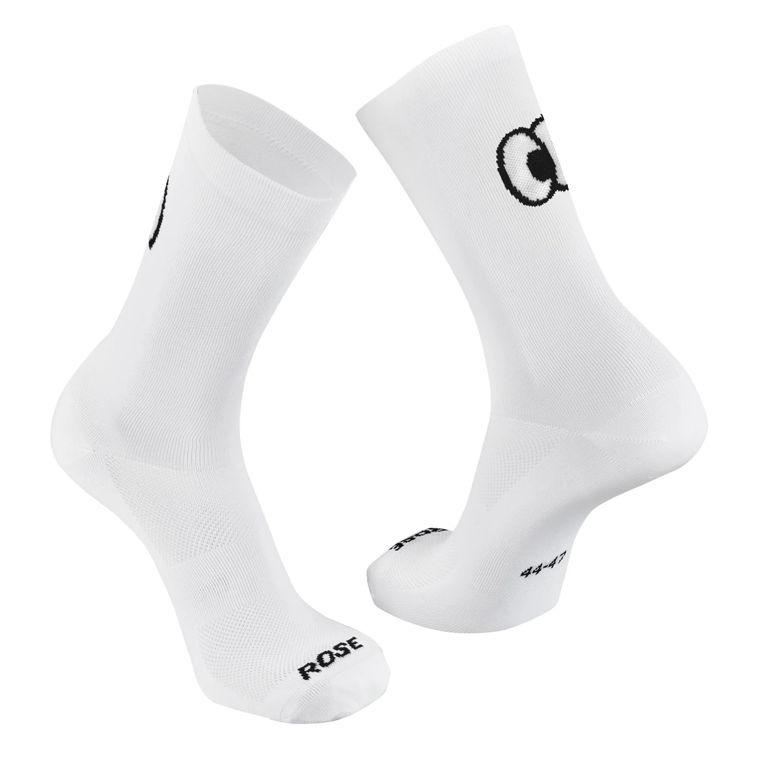 If you only have eyes for your bike again, the ROSE Eyes Right Socks will take a look around for you. With this look, none of your opponents will dare to pass you in the race! Thanks to breathable and odour-inhibiting Q SKIN yarn, long bike days are simply fun with these socks. Reinforcements on the heels and toes also offer you extra durability. Whether for road, gravel or trail, this look is simply irresistible!