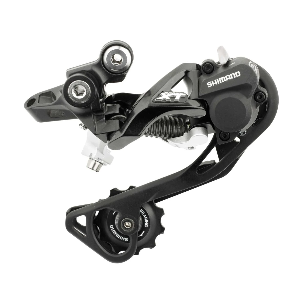 · Shimano Shadow RD+ – When the switch is in the “on” position, it increases the rear derailleur spring tension and reduces chain movement for a quieter and more stable ride. The “off” position facilitates mounting and dismounting of the rear wheel.