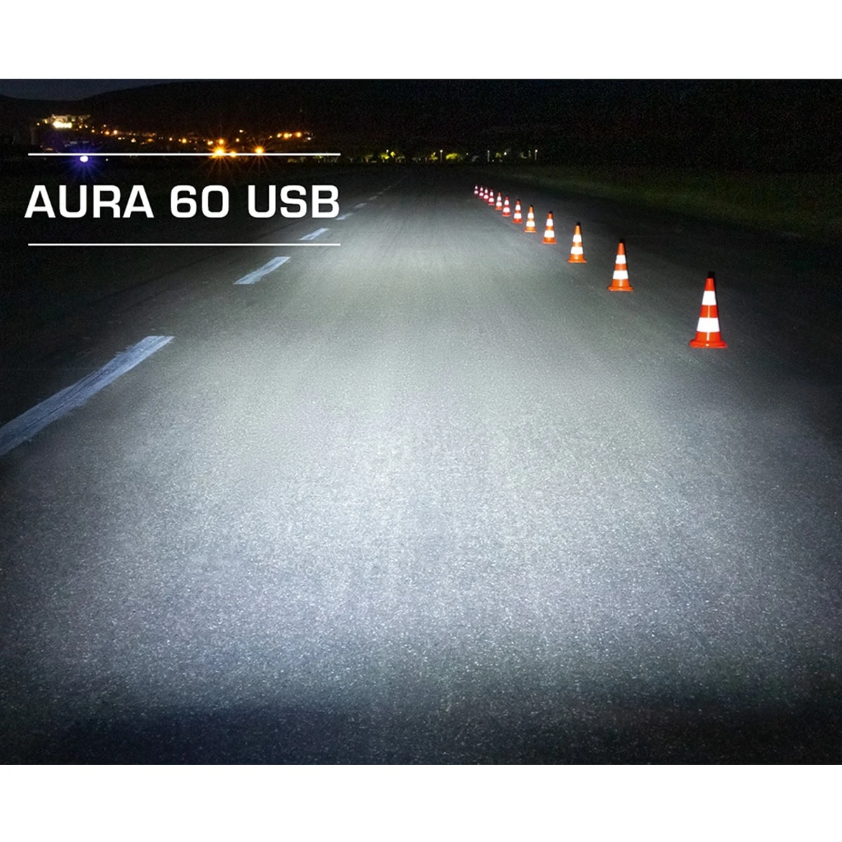 • EXCELLENT VISIBILITY: Thanks to the high-quality LED lens from Osram, the Aura 60 provides a very even light distribution and good visibility in distance, core, and side zones without blinding traffic.