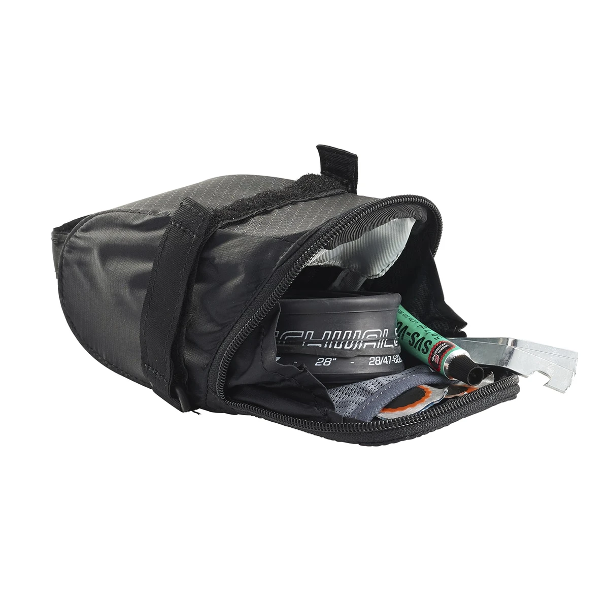 The RACE LIGHT saddle bag by VAUDE comes in a whole range of sizes. So you can decide for yourself how much storage space you need. Do you want to transport just one wrench or a comprehensive tool set? Choose the right size and you’re ready to go!